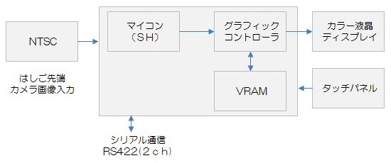 マイコン(SH)とグラフィックコントローラを使用し、刻々と変化する作業状態をリアルタイムに表示できるようにしています。 また、カラー液晶にタッチパネルを組み合わせることで、視認性と操作性の向上をはかっております。