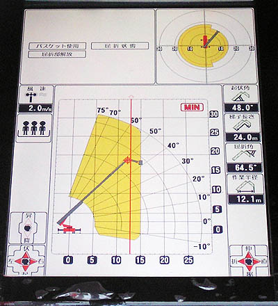 また、別オプションでスーパーインポーズ機能が装着可能となり、装着すれば、災害状況等バスケットからの俯瞰映像を基部で確認できます。