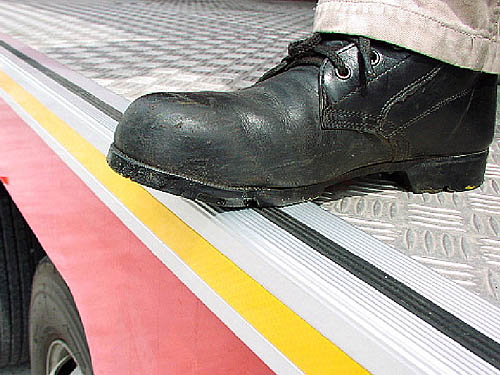 反射テープを貼付するボディーコーナ材は滑り止め加工を施している為、後部ボディー上での足滑らしによる転落を防ぎ、消火・救助作業の安全性が向上します。