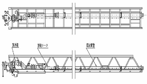1段目梯体最後部にスライド配管(長さ:約500mm程度)を取付梯体1段目ホースと梯体ホース接続の容易化。水圧によるホースの伸び縮みに依るホース接続部のはしごへの噛込防止等。